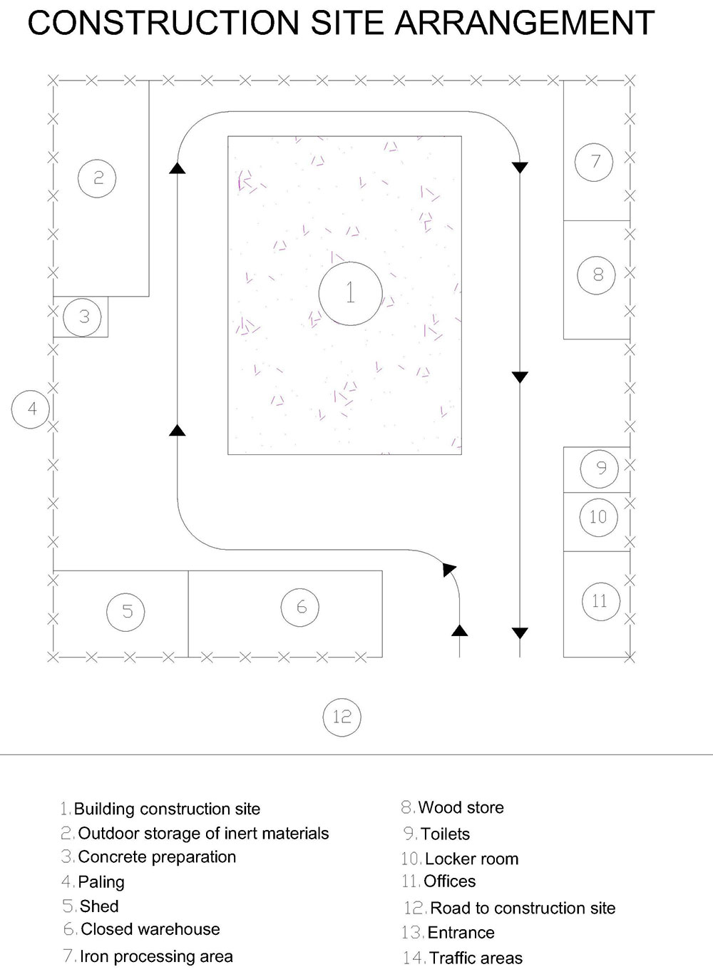 In order to better arrange the construction site, many factors should be taken into account, such as the type of work, (for example, the building construction project is more concentrated than road construction), the size of the project, the location of the project (in the cities there is a tight space and therefore a small freedom in the arrangement of the construction site).